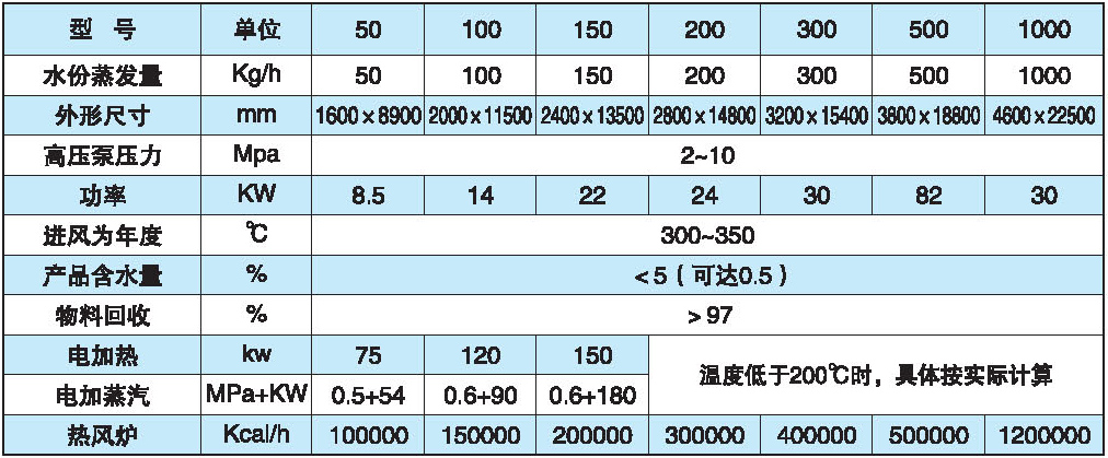 備注:1、水份蒸發量與物料的特性相關,本表蒸發量與溫度相關,數據僅供參考;
