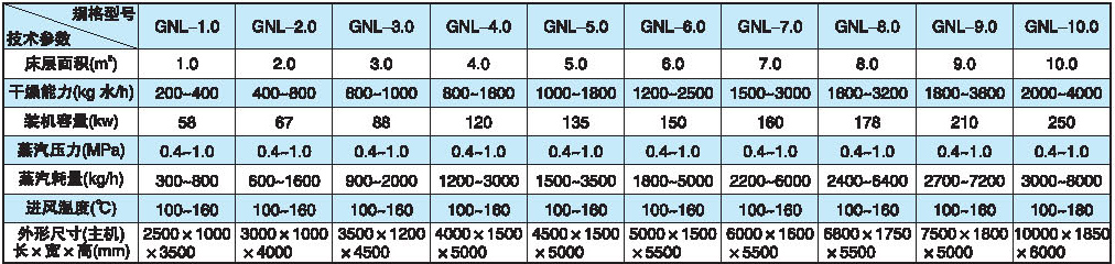 ◆ 節能高效,由于大部分熱量是由換熱效率約在90%的埋置在料層中的蒸汽加熱盤管提供,流化用熱空氣主要作為保證正常流態化的動力,比原有流化床干燥機所需熱空氣量大大降低,因此整個系統能耗及排氣熱損失也相應的大大降低,提高了干燥效率。