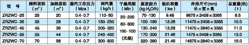 ◆ ZRZWC系列智能帶式穿流干燥機廣泛應用于食品、農副產品、脫水蔬菜、中藥材、水產品、土特產品、飼料及化工原料等行業之片狀、條狀、塊狀和顆粒物料的脫水干燥行業。